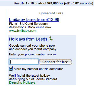 Search Engine Watch Forumsの情報によると、GoogleがClick-to-Callをイギリスで開始。