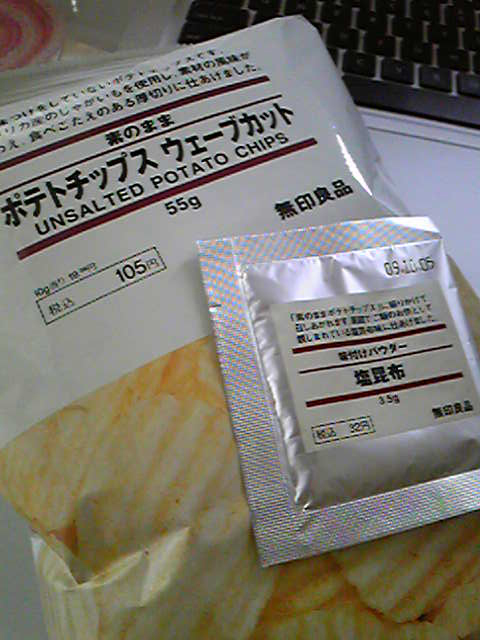 無印良品のポテトチップスで味が10種類くらい?から選べます。