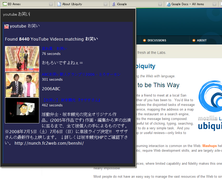 Mozilla Ubiquityはそんな隙間を埋めてくれるFirefoxプラグインです。